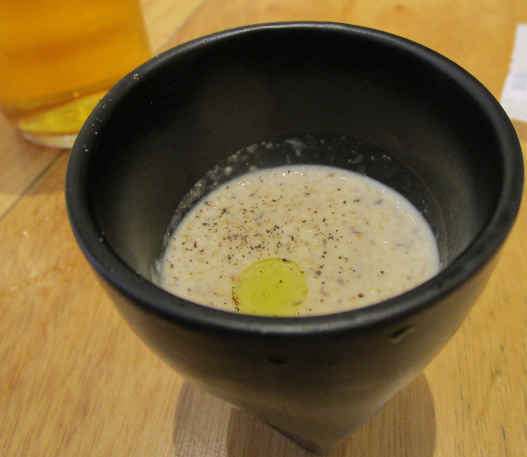 突き出しは干し椎茸のポタージュ