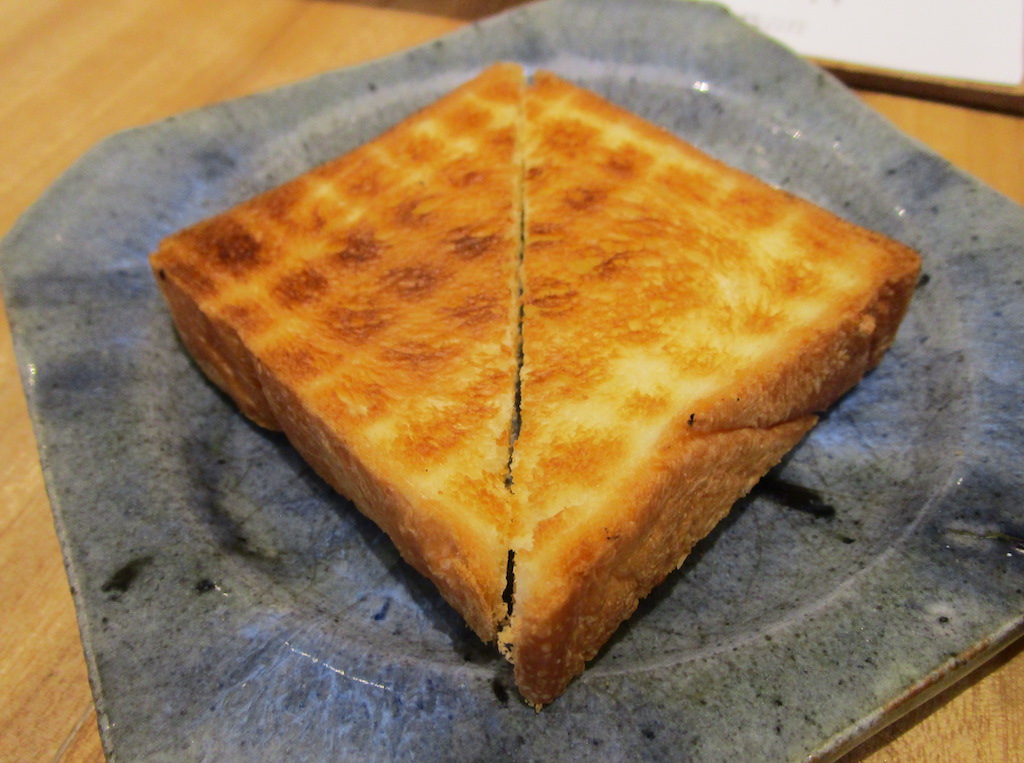 アジフライを食べた後はトーストを残りのソースで味わう、これが美味い!