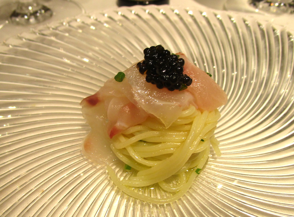 次は宮崎キャビアUMAMIと庄内浜のお魚の冷たいカッペリーニ